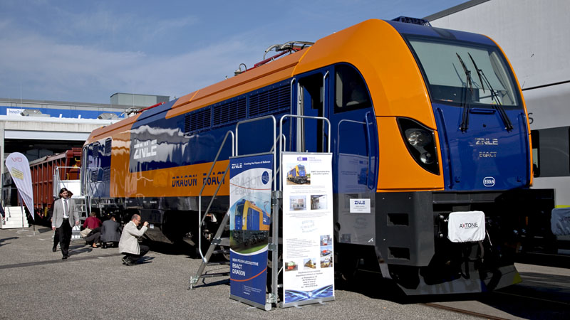| Die neue Güterzugellok E6ACT vom Werk ZNLE Gleiwitz – einem ehemaligen Preussischen Ausbesserungswerk. Berlin InnoTrans 2010, 24. September 2010 |