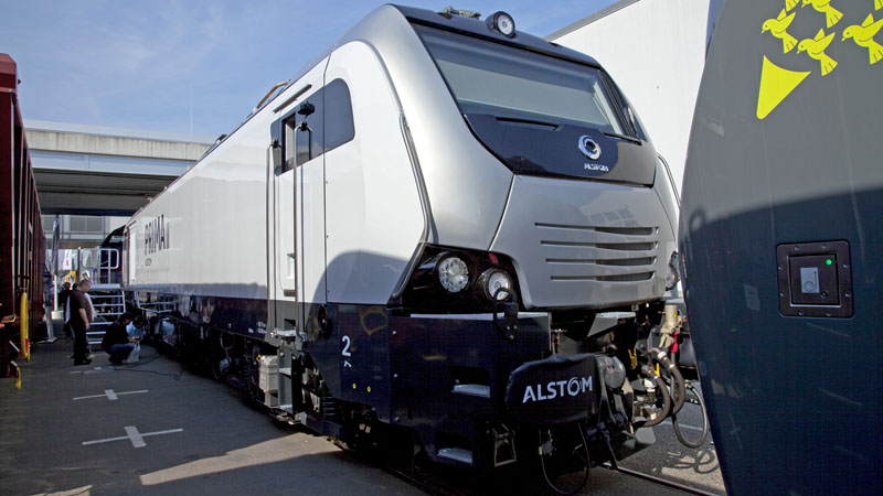 | Auch von ALSTOM gab es eine neue E-Lok – die PRIMA II – leider schlecht zu fotografieren. Berlin InnoTrans 2010, 24. September 2010 |