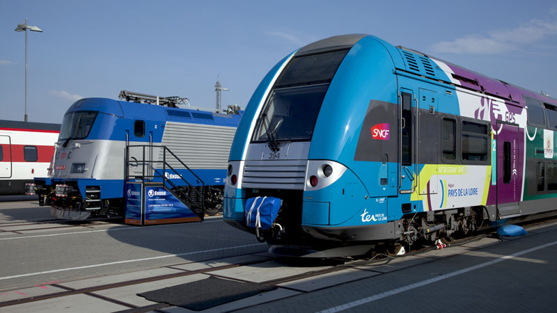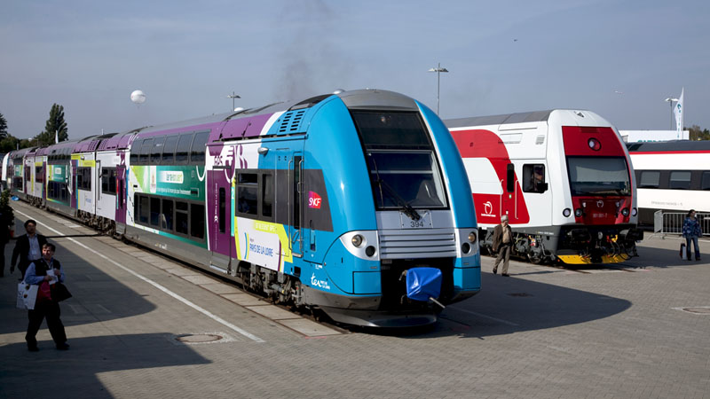 | Die recht verschiedenen Doppelstrocktriebzüge für Frankreich und Tschechien. Berlin InnoTrans 2010, 24. September 2010 |