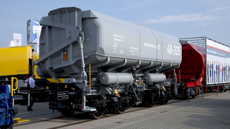 | Ein schwerer Seitenkipper für den Stromkonzern VATTENFALL mit der Nr. 48-325. Berlin InnoTrans 2010, 24. September 2010 |