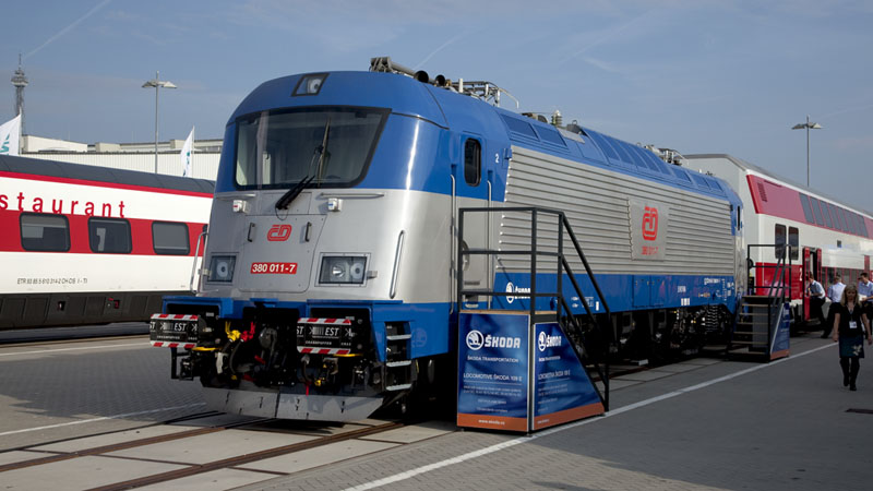 | Die moderne SKODA-Ellok 380 011-7 der Tschechischen Staatsbahnen. Berlin InnoTrans 2010, 24. September 2010 |