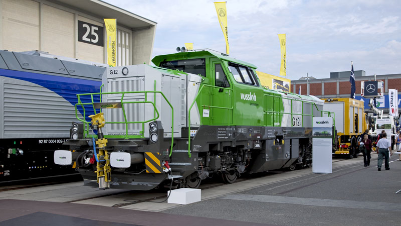 | Auch eine Premiere auf der InnoTrans, die dieselhydraulische Streckenrangierlok G12 von VOSSLOH. Berlin InnoTrans 2010, 24. September 2010 |