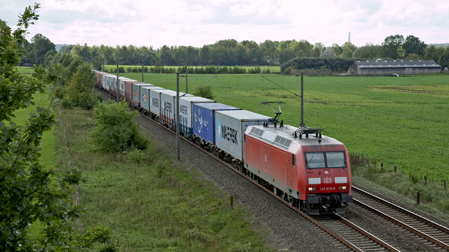 | Dagegen hatte die 145 070-9 noch mehr Seekisten nach Hamburg zu bringen. Ramelsloh, 30. September 2010 |