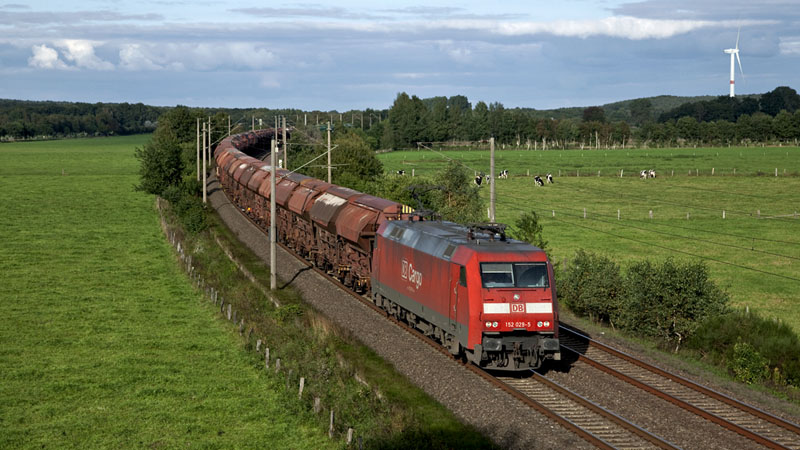 | Einen Schüttgutzug von Hamburg-Hohe Schaar hatte die 152 029-5 gen Westen zu bringen. Ramelsloh, 30. September 2010 |