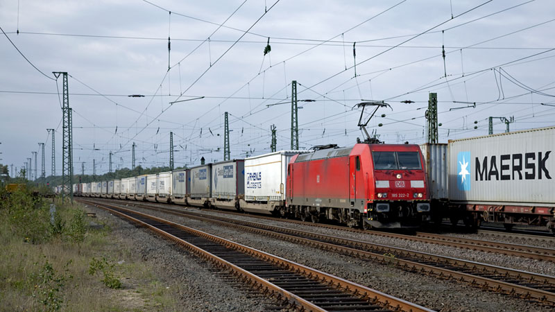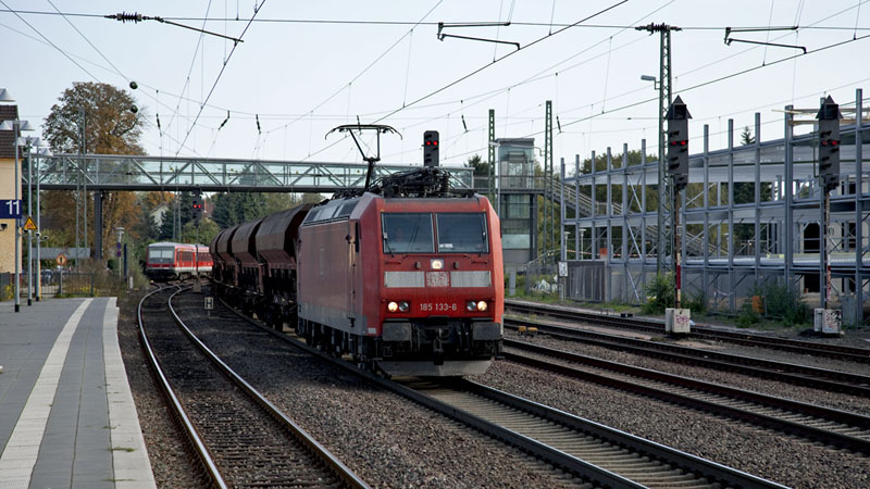 | Einen Tadg-Ganzzug von Hohe Schaar brachte die schweiztaugliche 185 133-6 in den Süden. Buchholz (i.d.Nordheide), 1. Oktober 2010 |