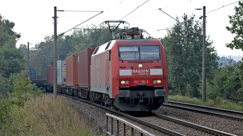 | Die dreckige 152 115-2 auf dem Weg in den Hamburger Hafen. Hamburg-Moorburg, 12. Oktober 2010 |
