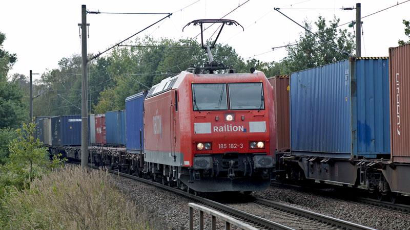 | Während der oben gesichtete Zug noch steht, kam die 185 182-3 herein. Hamburg-Moorburg, 12. Oktober 2010 |