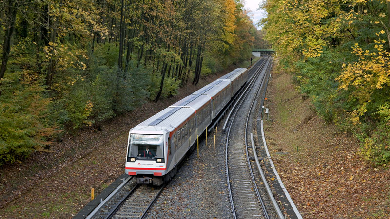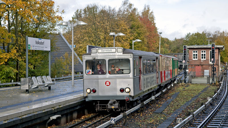 | Einfahrender DT4-Zug nach Großhansdorf. Hamburg-Volksdorf, 24. Oktober 2010 |
