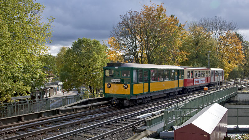 | In dieser schönen Lackierung fuhren die DT1-Triebwagen in ihrer Anfangszeit. Hamburg-Volksdorf | Buckhorn, 24. Oktober 2010 |