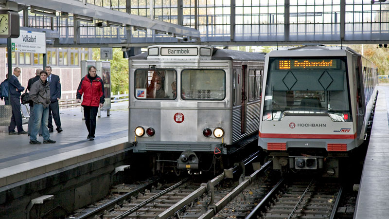 | Das sind Welten – links der urige Silberling und rechts ein DT4 (immerhin auch schon ab 1988…). Hamburg-Volksdorf, 24. Oktober 2010 |