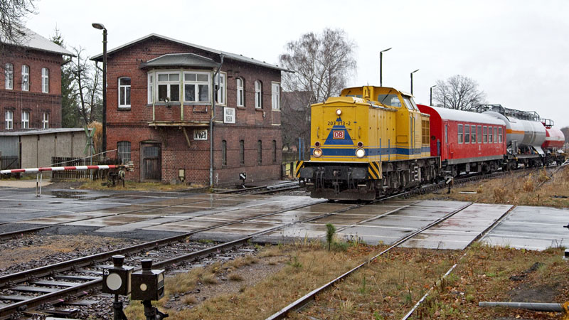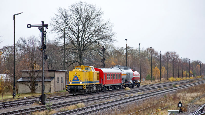 | Nun durfte die 203 313-2 mit ihrem Gefahrgut-Schulungszug nach Hoyerswerda ausfahren. Niesky, 6. November 2010 |