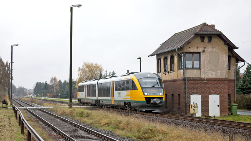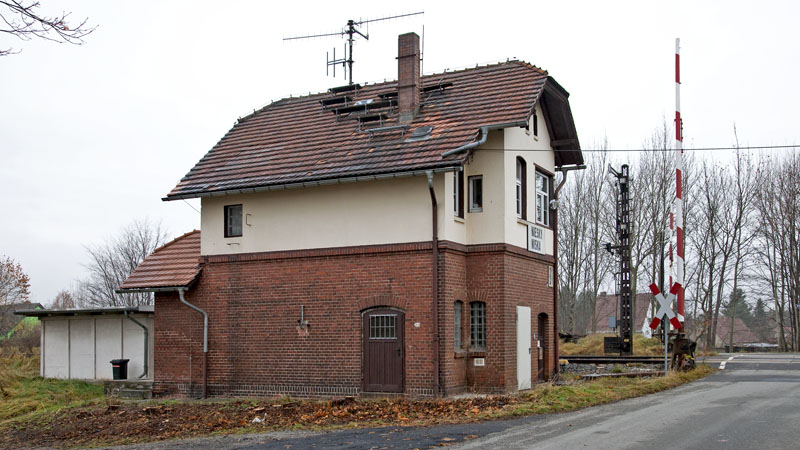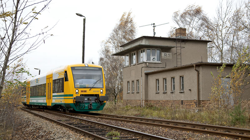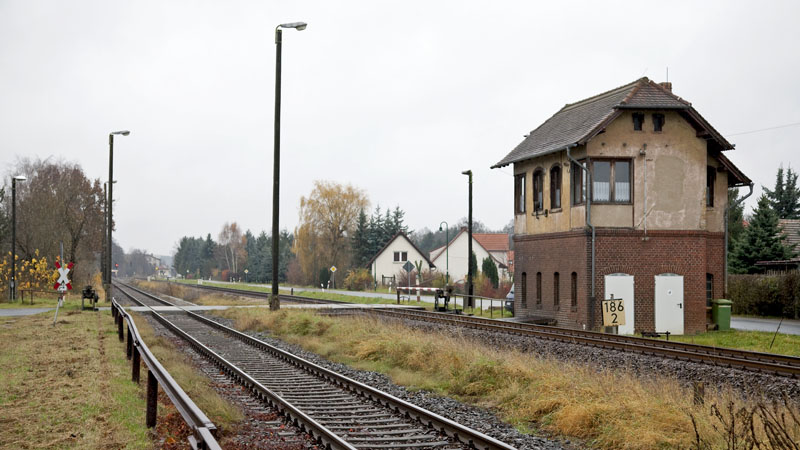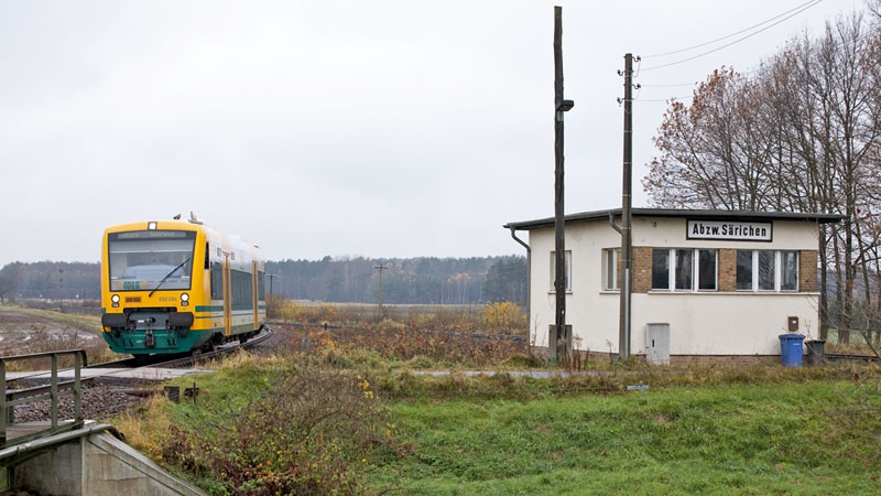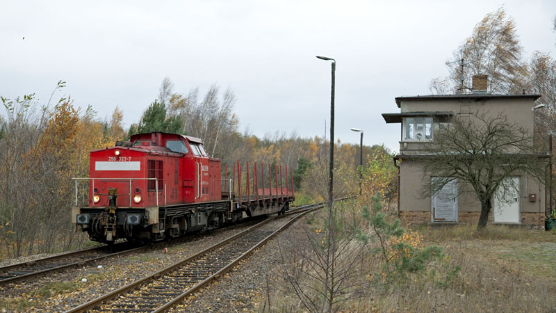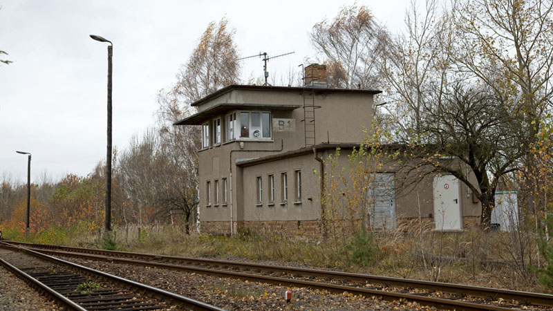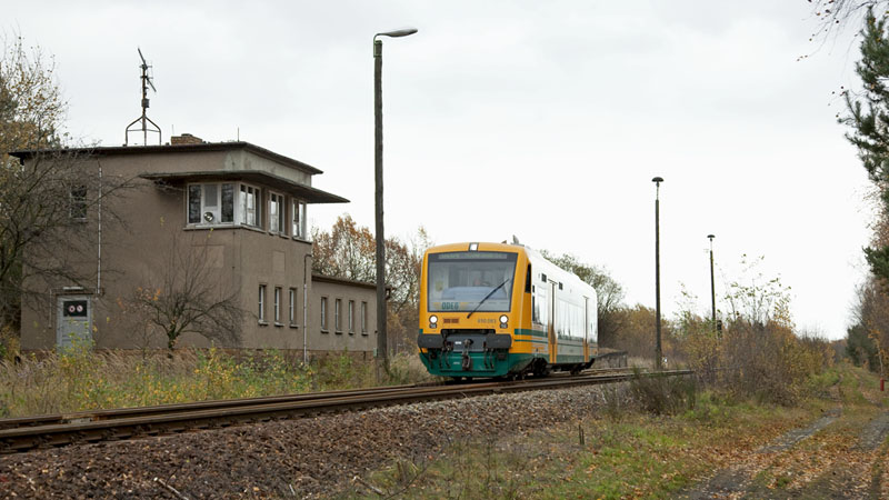 | Und passierte das Stellwerksgebäude mitten in der "Pampa". Abzweig Särichen, 7. November 2010 |