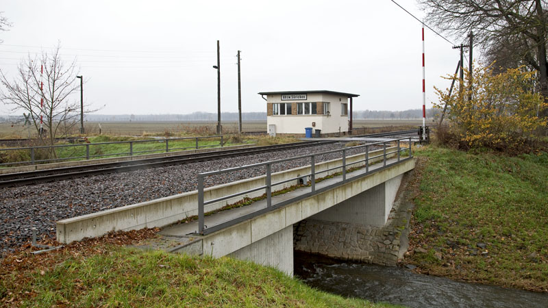 | Brücke, Baum, Schranken und Flüsschen… herrlich. Abzweig Särichen, 7. November 2010 |