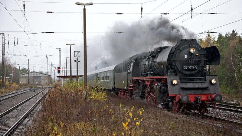 | Der Dampfsonderzug des Lausitzer Dampflokclub mit der 35 1019-5 ins Lausitzer Revier. Knappenrode, 6. November 2010 |