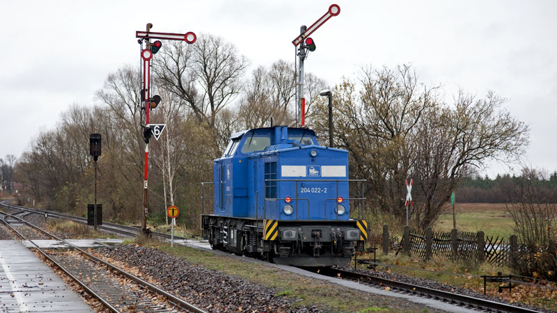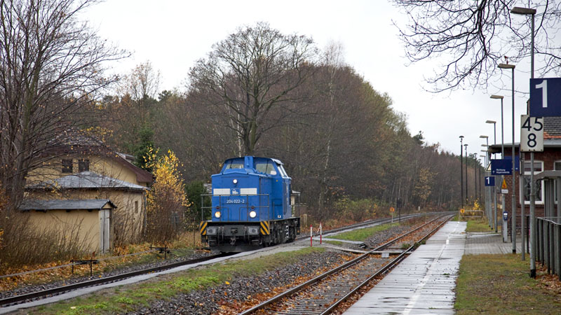 | Mit Karacho donnerte die 204 022-2 der Pressnitztalbahn in Richtung Niesky durch. Klitten, 6. November 2010 |
