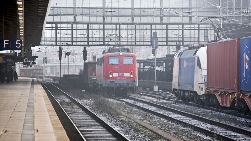| …und begegnete einem gemischten Güterzug mit der 140 539-8. Bremen Hauptbahnhof, 27. November 2010 |