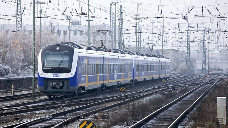 | Die neue Regio-S-Bahn der NWB mit den Triebzügen 440 883 und 440 215 auf Schnupperfahrt. Bremen Hauptbahnhof, 27. November 2010 |