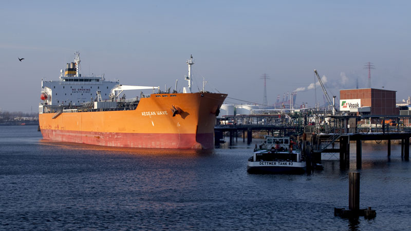 | Bei Vopak lag dieser kleinere Tanker AEGEAN WAVE am Kai. Hamburg-Hohe Schaar, 4. Dezember 2010 |