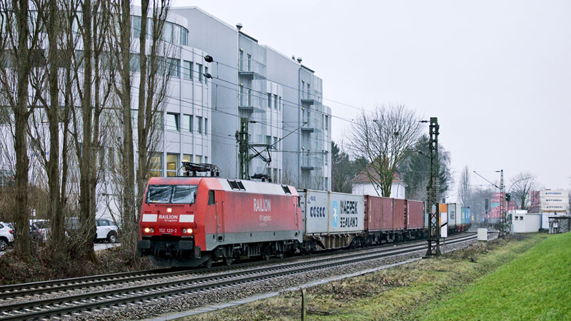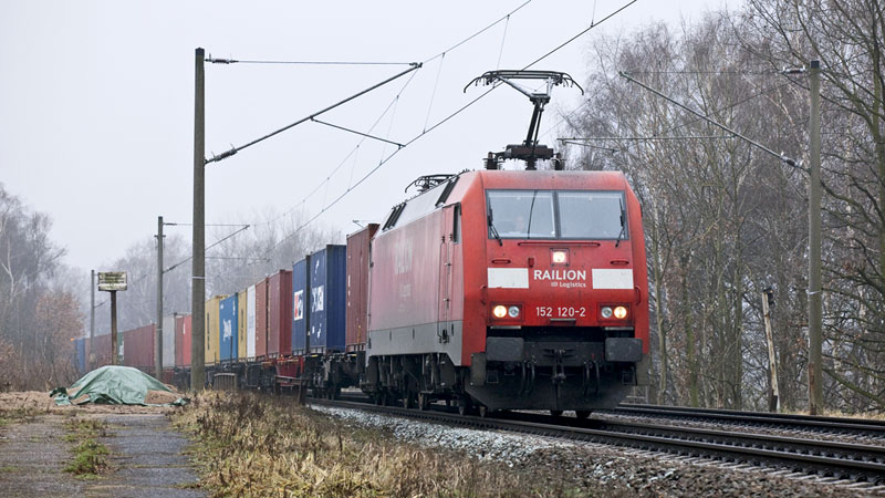 | Mit vielen Containern polterte die 152 120-2 in den Hafen. Hamburg-Moorburg, 22. Januar 2011 |