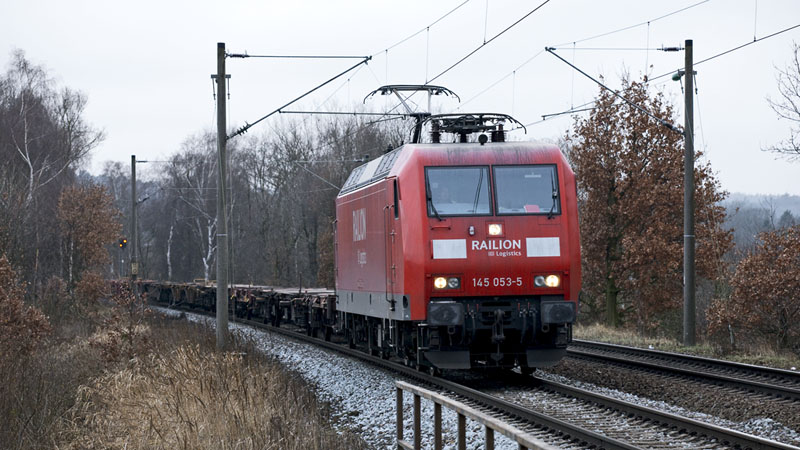 | Einen leeren Containerzug brachte die 145 053-5 nach Waltershof. Hamburg-Moorburg, 23. Januar 2011 |