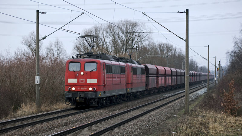| Einen schweren Erzzug nach Beddingen hatten die 151 112-0 und 151 091-6. Hamburg-Moorburg, 23. Januar 2011 |