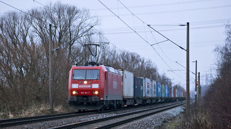 | Wird es dunkler, brummt die Hafenschiene – hier die 185 161-7. Hamburg-Moorburg, 23. Januar 2011 |