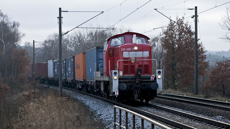 | Nun kam die "Pendlerin" 295 086-3 mit einem Containerzug nach Maschen heraus. Hamburg-Moorburg, 23. Januar 2011 |