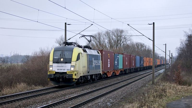 | Die für die TX Logistik fahrende ES 64 U2-007 der boxXpress.de. Hamburg-Moorburg, 23. Januar 2011 |