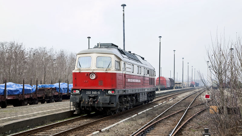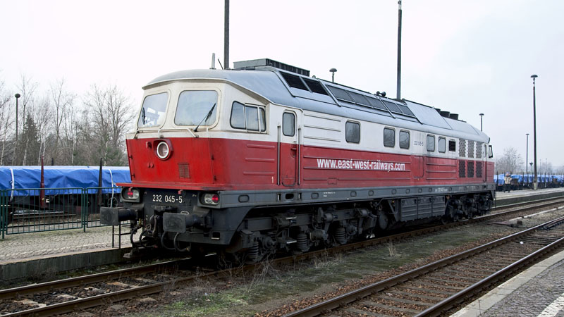 | Die EWR-Ludmilla 232 045-5 kam gerade von Polen. Forst (Lausitz), 28. Januar 2011 |