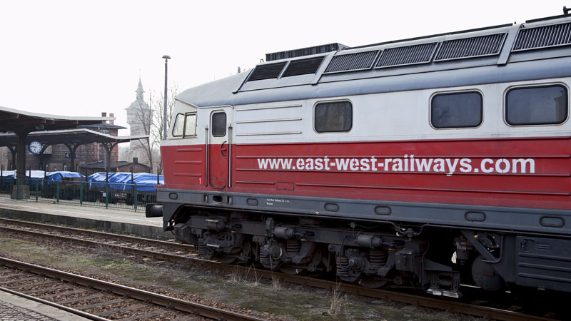 | Die ehemalige DB-Lok fährt jetzt für die East West Railways. Forst (Lausitz), 28. Januar 2011 |