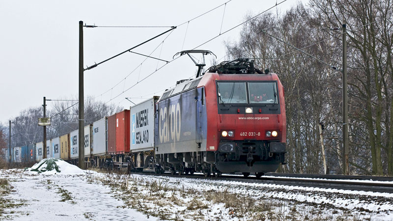 | Und nun die 482 033-8 der Schweizerischen SBB mit noch mehr Seekisten. Hamburg-Moorburg, 15. Februar 2011 |