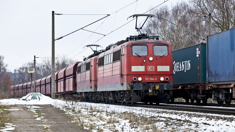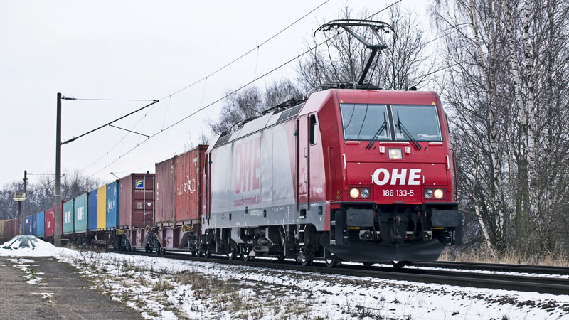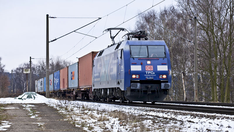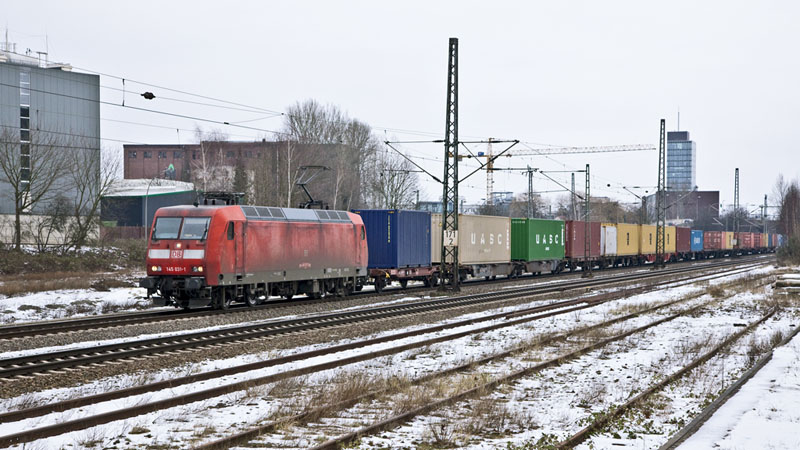 | Noch mehr Seekisten brachte die 145 031-1. Hamburg-Unterelbe, 19. Februar 2011 |