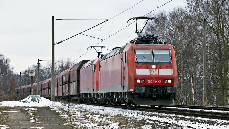 | Nanu, die 185 144-3 von DB Schenker Rail Schweiz in DT mit 185 072-6 vor einem Kohleleerpark. Hamburg-Moorburg, 19. Februar 2011 |