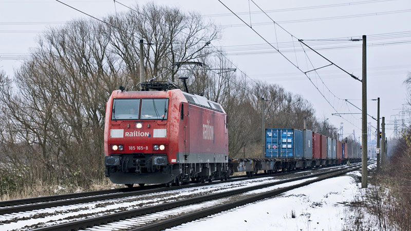 | Mit einer neuen Leistung kam die 185 165-8 wieder aus dem Hafen heraus. Hamburg-Moorburg, 19. Februar 2011 |
