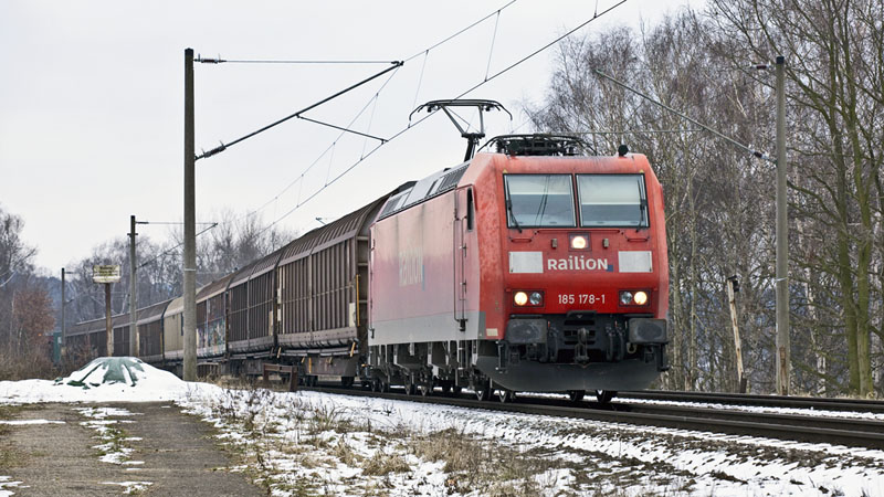 | Die recht scheckige 185 178-1 kam mit einem gemischtem Güterzug. Hamburg-Moorburg, 19. Februar 2011 |
