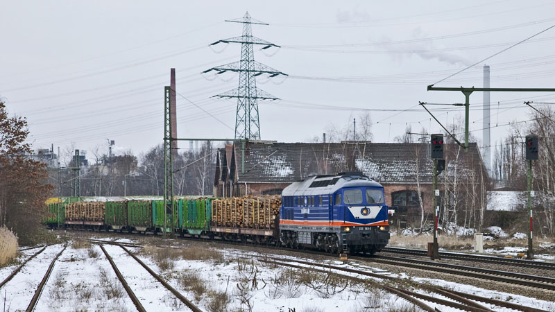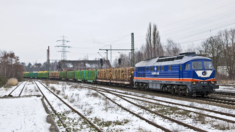 | …232 103-2 der Privatbahn RailDox mit einem schweren Holzzug! Hamburg-Unterelbe, 19. Februar 2011 |