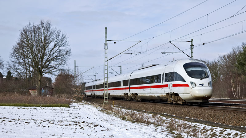 | Der ICE 380 von Berlin nach Århus mit dem Diesel-Triebzug 605 006. Halstenbek, 20. Februar 2011 |