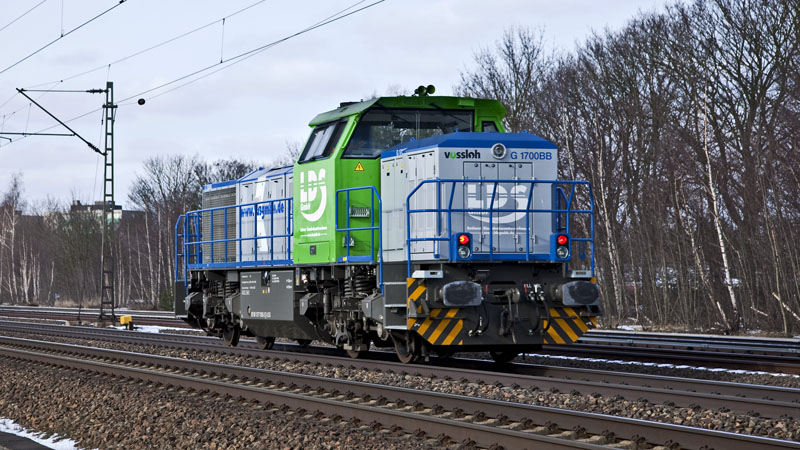 | Die neue MaK G1700BB der LDS – die 277 030-3 auf dem Weg nach Kiel. Halstenbek, 20. Februar 2011 |