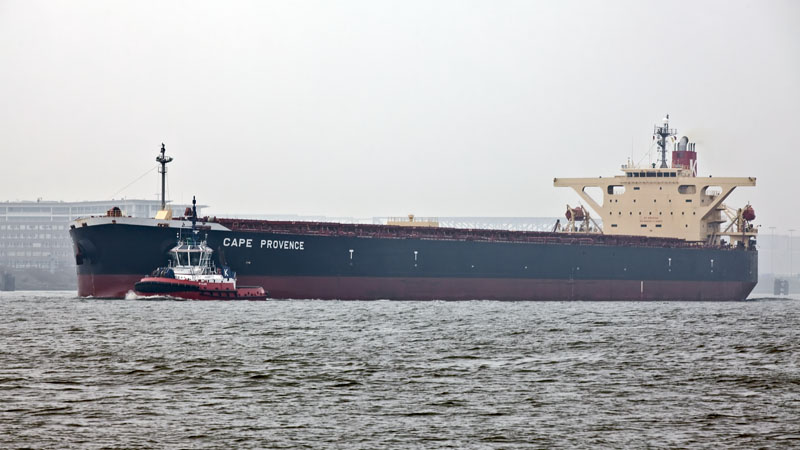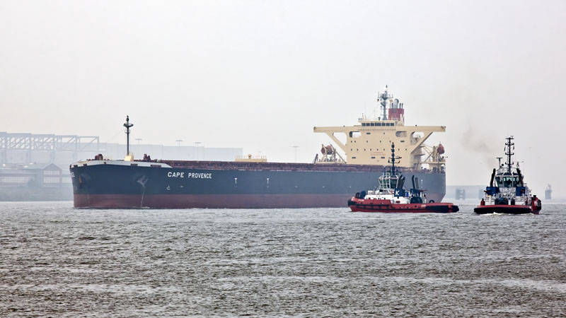 | Die Schlepper RT MARGO und RT CLAIRE nehmen den Bulker CAPE PROVENCE in Empfang. Hamburg-Nienstedten, 2. März 2011 |