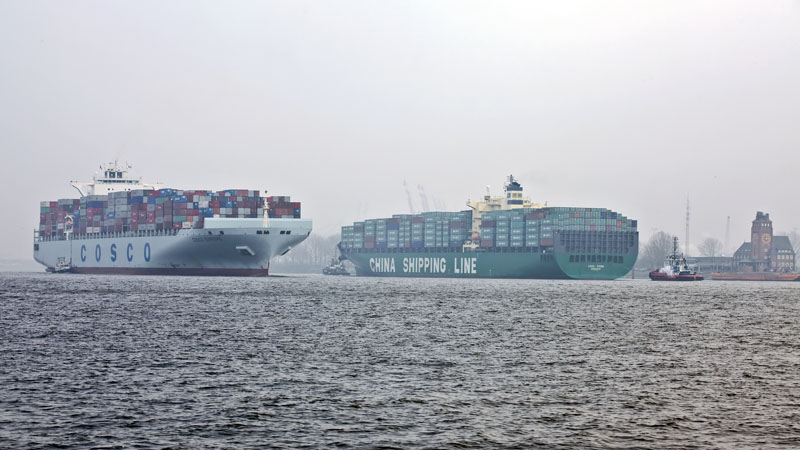 | Treffen der Giganten! Die COSCO EUROPE trifft die CSCL KOBE. Hamburg-Nienstedten, 2. März 2011 |