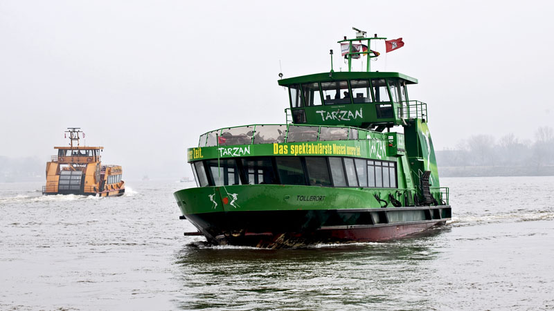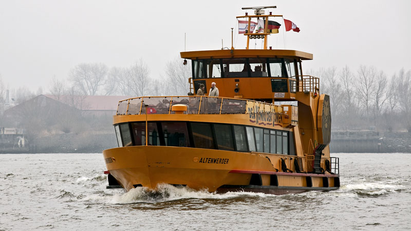 | Die ALTENWERDER der HADAG im AIRBUS-Werksverkehr legt gleich an. Hamburg-Nienstedten, 2. März 2011 |