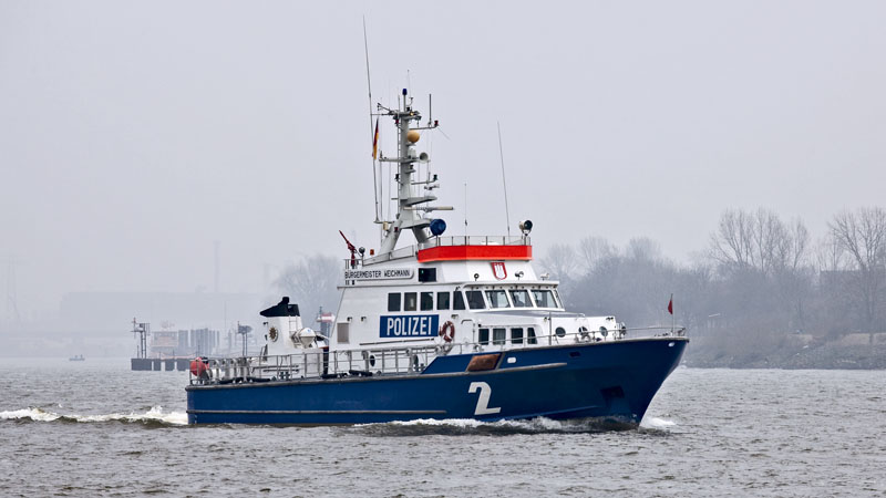 | BÜRGERMEISTER WEICHMANN der Wasserschutzpolizei schaute nach den rechten Dingen. Hamburg-Nienstedten, 2. März 2011 |