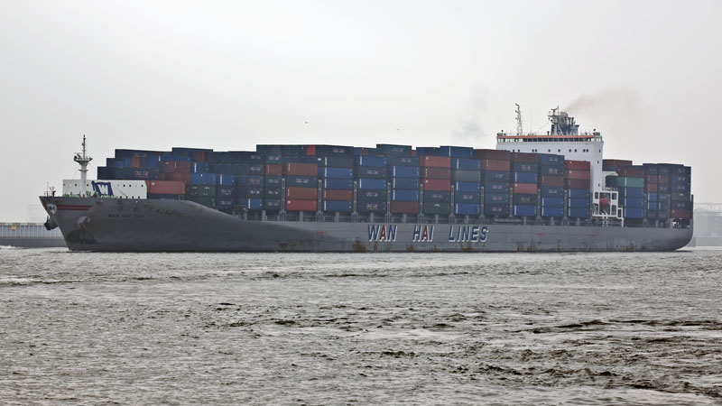 | Ein rustikaleres Containerschiff ist die WAN HAI 510. Hamburg-Nienstedten, 2. März 2011 |