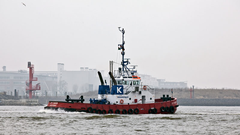 | Die gewaltige ZP CONDON der KOTUG Schleppreederei nimmt rückwärts Fahrt auf. Hamburg-Nienstedten, 2. März 2011 |