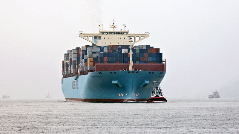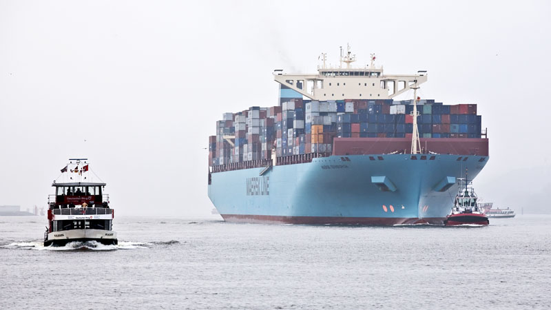 | Nun wurde die MAERSK EDINBURGH rückwärts in den Containerhafen bugsiert. Hamburg-Nienstedten, 4. März 2011 |