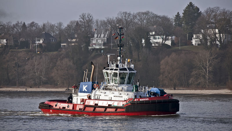 | Der KOTUG Hafenschlepper RT MARGO zerrte an der "Leine". Hamburg-Waltershof, 4. März 2011 |