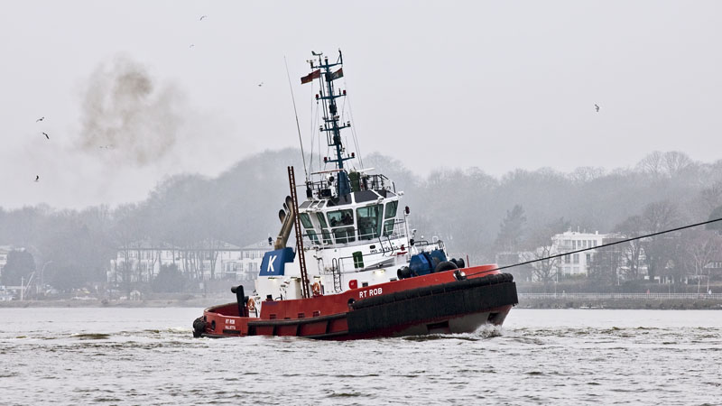 | Da hatte RT ROB aber ordentlich zu kämpfen, um die MAERSK EDINBURGH abzubremsen. Hamburg-Waltershof, 4. März 2011 |