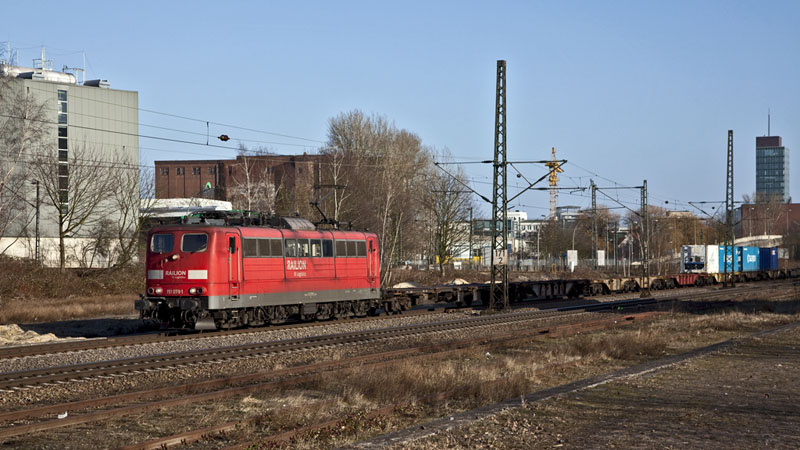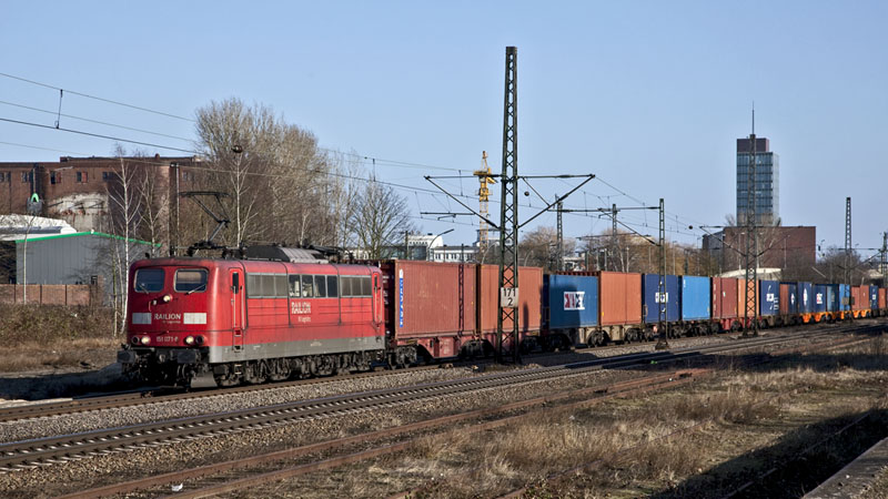 | Die rüstige 151 071-8 mit Seekisten für den Hafen. Hamburg-Unterelbe, 5. März 2011 |