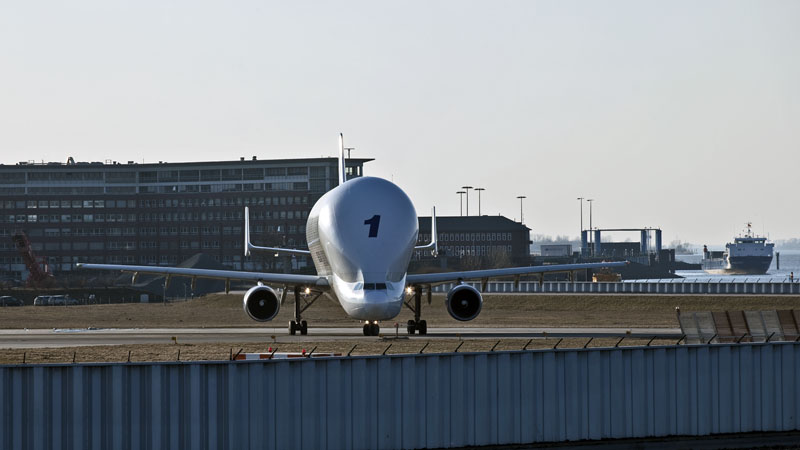 | Die BELUGA 1 wendete auf der Startbahn von AIRBUS. Hamburg-Finkenwerder, 8. März 2011 |