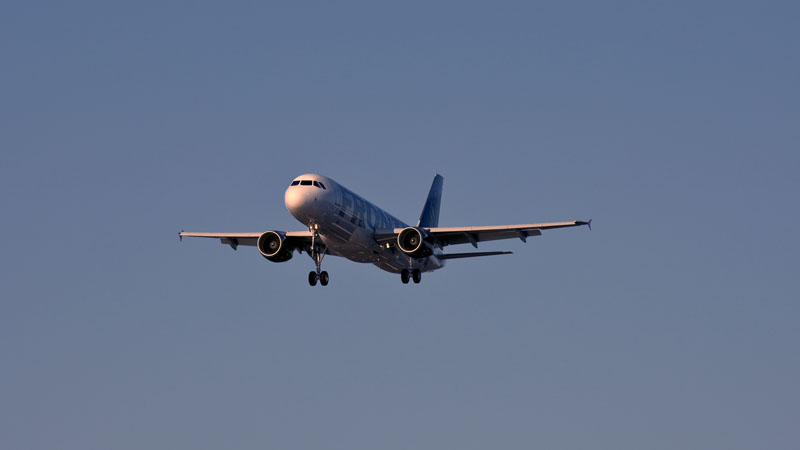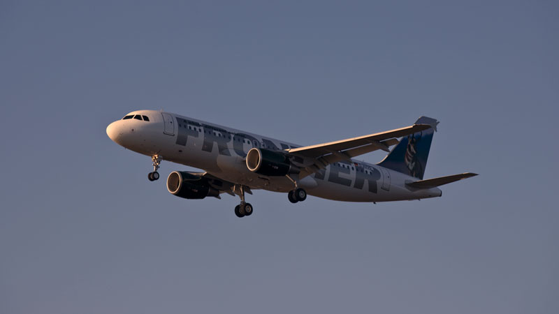 | Ein AIRBUS A320 der amerikanischen FRONTIER AIRLINES. Hamburg-Finkenwerder, 8. März 2011 |